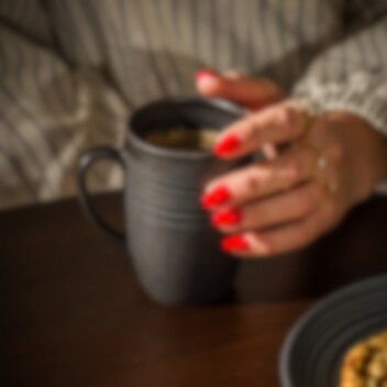 Die Scene-Tasse fällt sofort auf – schwarz, stilrein und mit dem Restaurant-Gefühl, das jede Kaffeepause aufwertet. Die halbmatte schwarze Glasur aus Steingut bietet einen eleganten Kontrast und ein weiches, angenehmes Gefühl in der Hand. Die taktilen Linien umrahmen die Form mit Balance und Charakter – Einfachheit mit Pfiff. Mikrowellen- und spülmaschinenfest, stapelbar und robust – geschaffen für den Kaffee im Alltag, aber stilvoll genug für Feste. Entworfen in den nordischen Ländern, hergestellt in Portugal. Derselbe Kaffee – neues Gefühl.