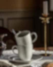 The Nordic Dawn collection is inspired by Nordic nature, featuring patterns reminiscent of the sun’s rays and a colour palette like drawn from a dewy dawn. The Gleam shade captures the crisp, white light of the early morning, while the plate’s design creates a play of reflections. Also available in the shades Bark, Dew, Heather, and the decors Summer and Nature. Set your table in a single shade or mix and match.