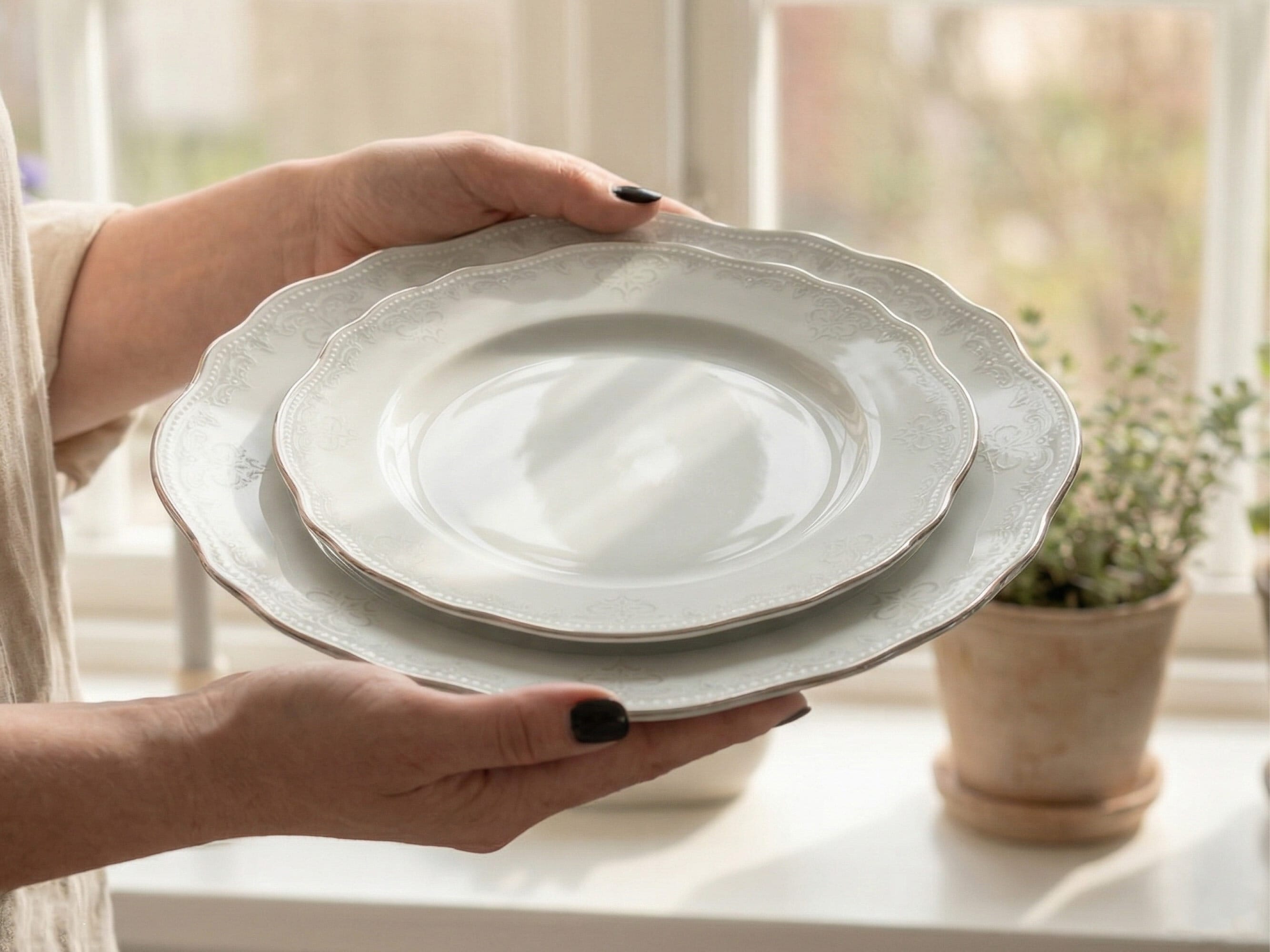 Vintage-henkinen mallisto, jossa on kohotettu helminauhareunus ja käsinmaalattu platinareuna. Valikoidut osat lipstick pink -sävyssä tuovat kattaukseen ripauksen ekstraa. Täydennä yhteensopivilla kristallilaseilla täydellisen juhlakattauksen luomiseksi.