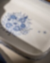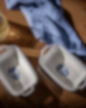 Duka flott med vår såskanna i kollektionen Aspvik och servera kall eller varm sås ur kannan. Såskannan har en elegant fot som gör den extra ståtlig. Aspvik är en blåvit dröm i himmelska nyanser designad av Micael Bindefeld med blå blomstrande illustrationer av Anna Handell.