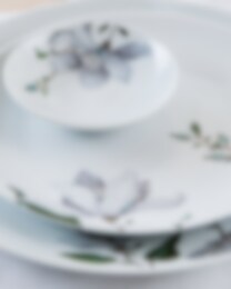 Clematis, designad med Vallila, förenar finsk design och blomsterkraft. Slingrande mönster i grönt, turkos och grått skapar en livfull känsla. Tillverkad i slitstarkt porslin med rent formspråk – en tidlös kollektion som ger vardagen energi.